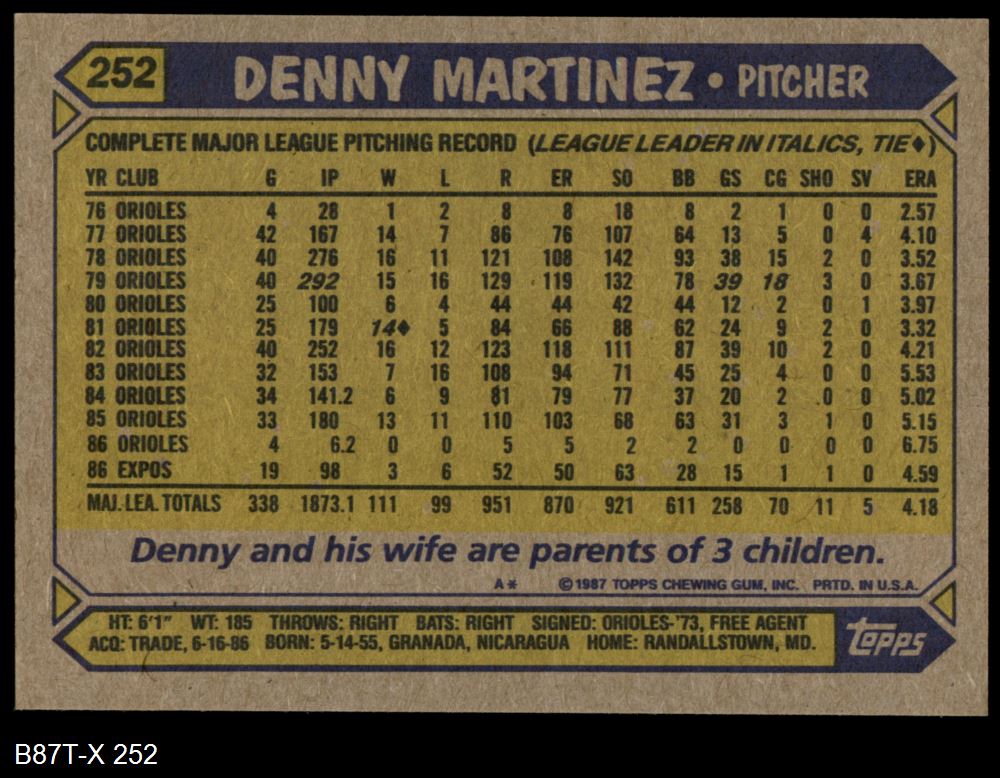 1987 Topps #252 Dennis Martinez