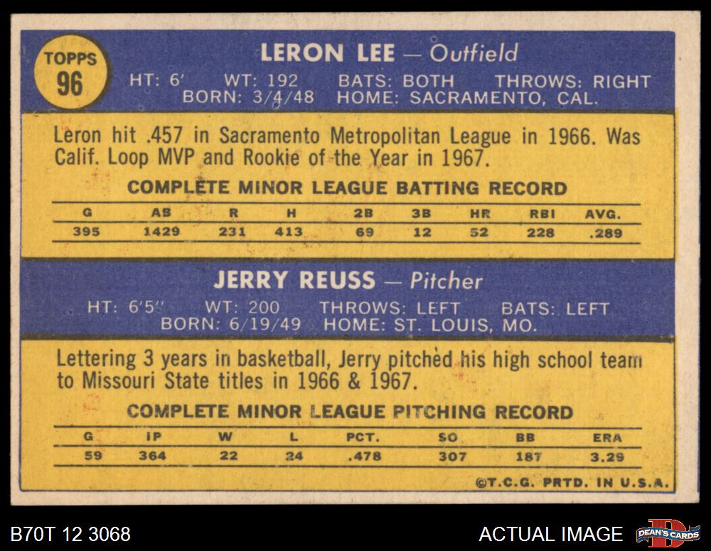 1970 Topps #96 - Leron Lee / Jerry Reuss Cardinals Rookies 5 - EX