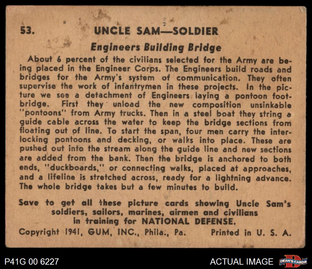1941 Uncle Sam #53 Engineers Building Bridge 2 - GOOD