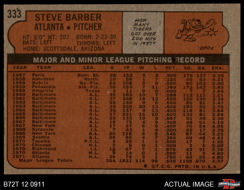 1972 Topps #333 Steve Barber 4 - VG/EX