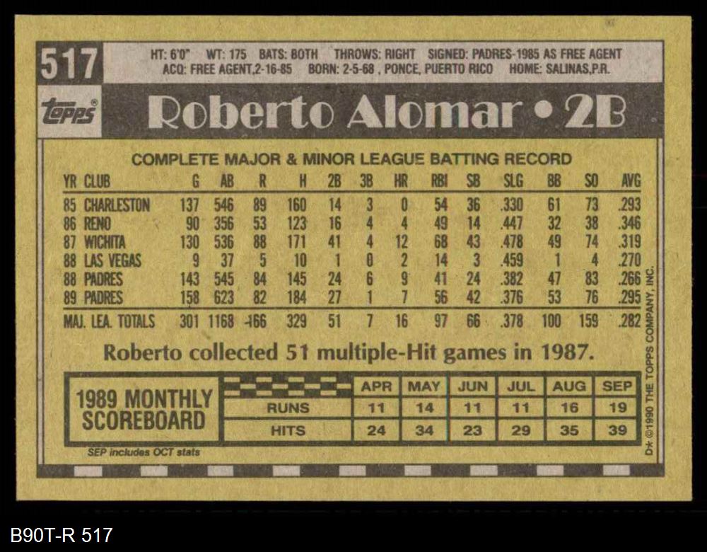 1990 Topps #517 Roberto Alomar 8 - NM/MT