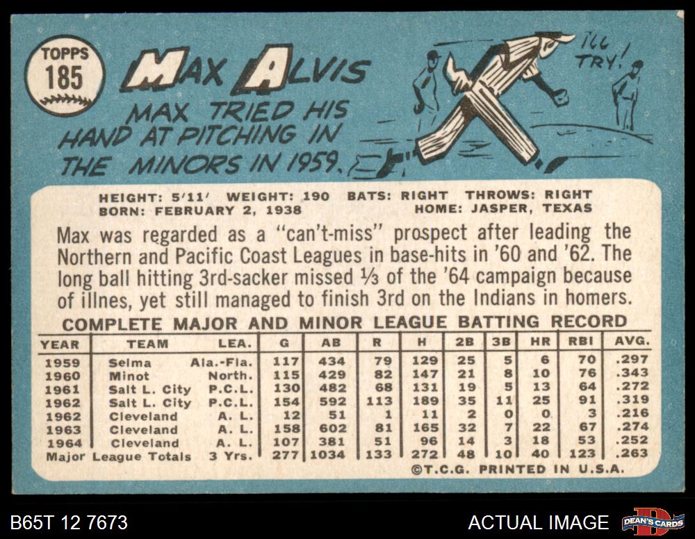 1965 Topps #185 Max Alvis 5.5 - EX+
