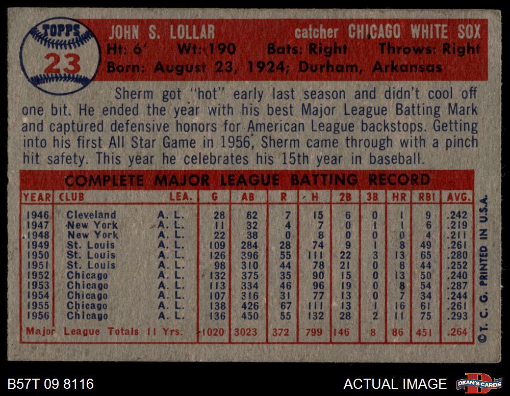 1957 Topps #23 Sherm Lollar