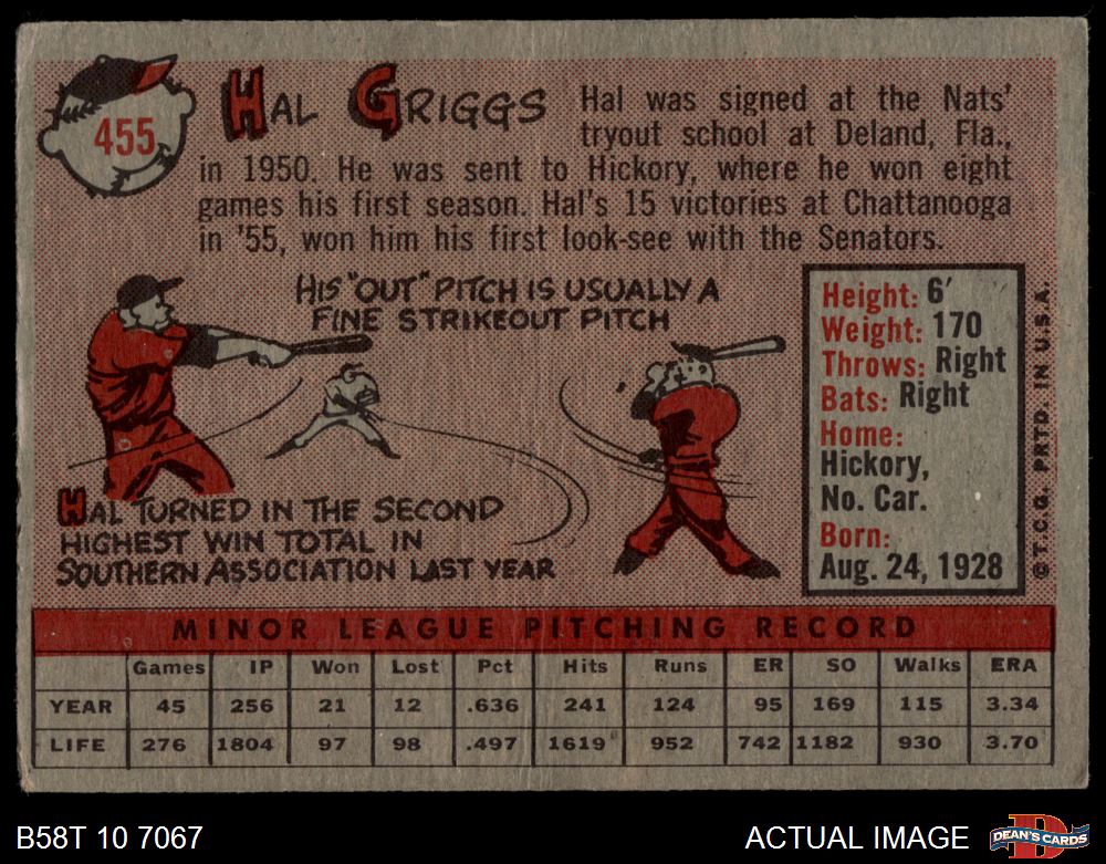 1958 Topps #455 Hal Griggs 2.5 - GD+