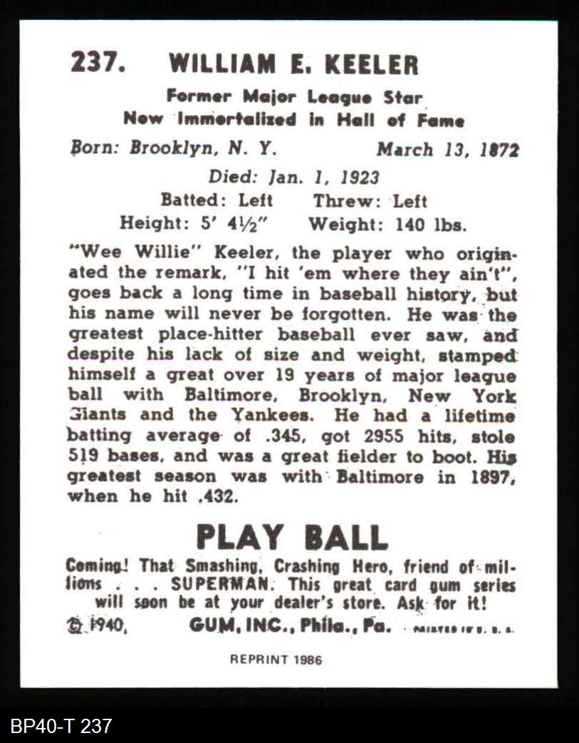 1940 Play Ball Reprint #237 Willie Keeler 8 - NM/MT