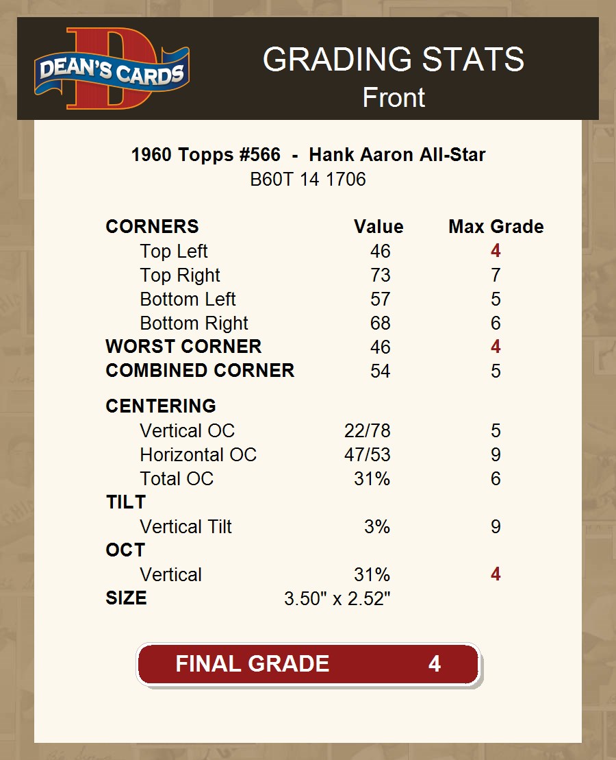 1960 Topps #566 - Hank Aaron All-Star 4 - VG/EX