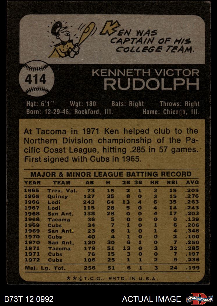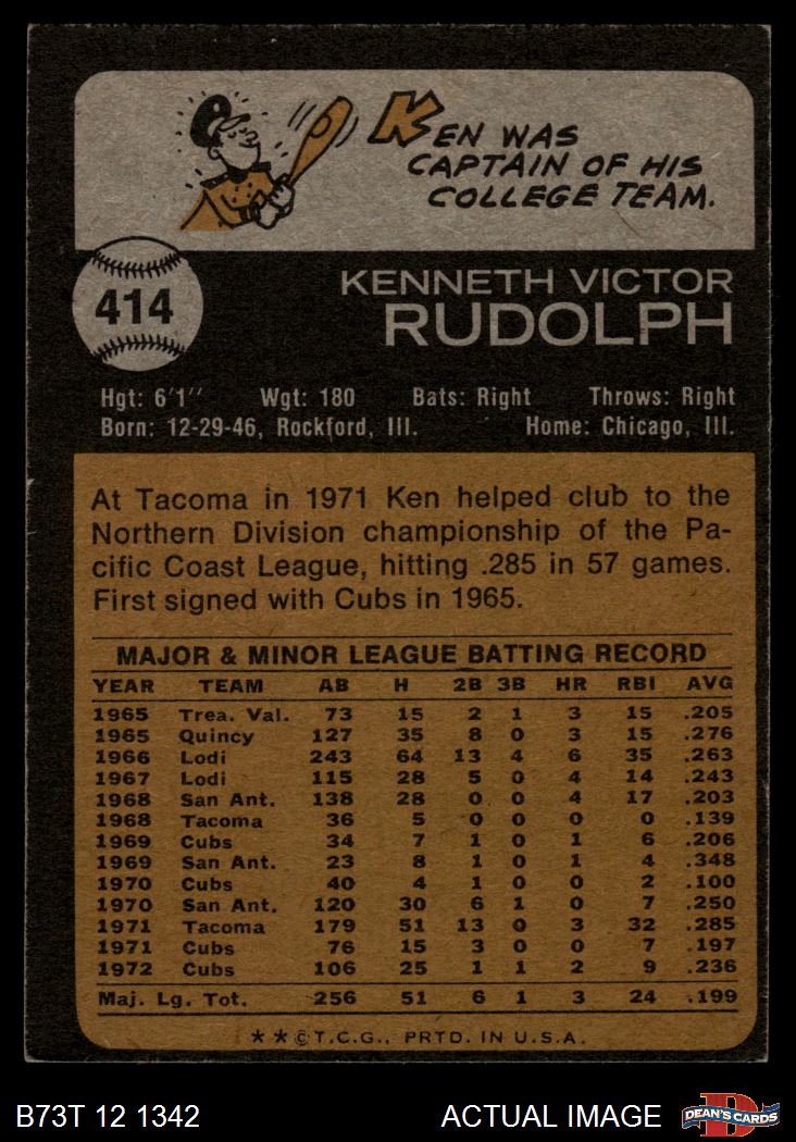 1973 Topps #414 Ken Rudolph 4 - VG/EX