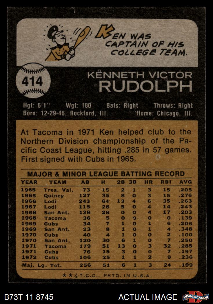 1973 Topps #414 Ken Rudolph 6 - EX/MT