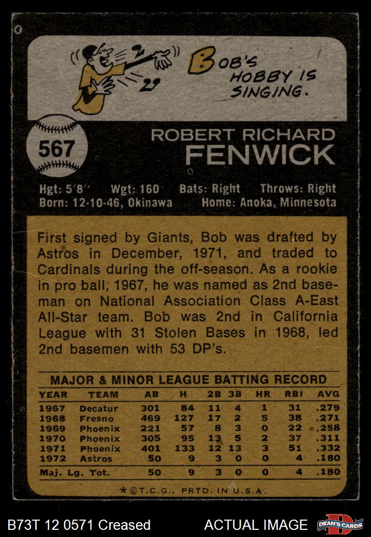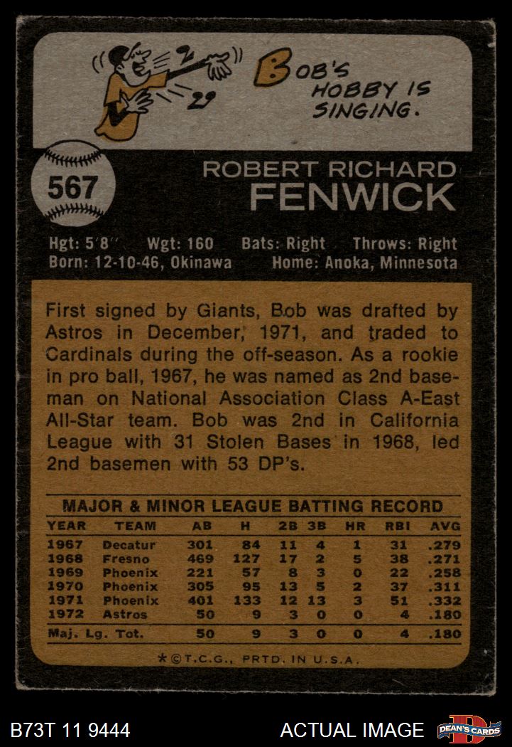 1973 Topps #567 Bob Fenwick
