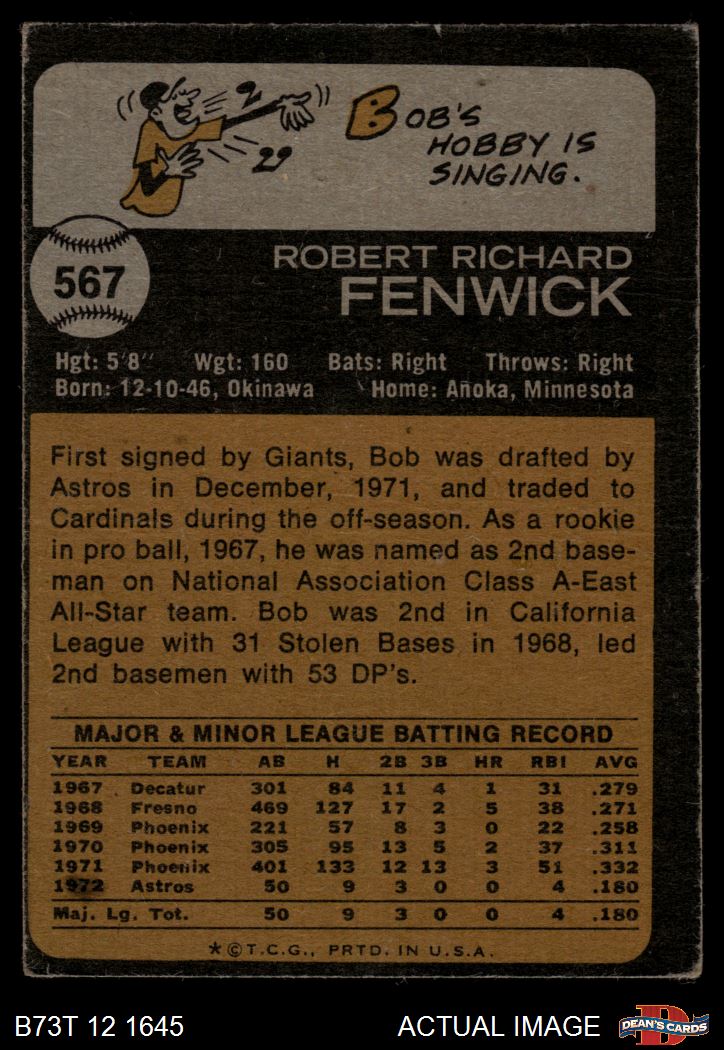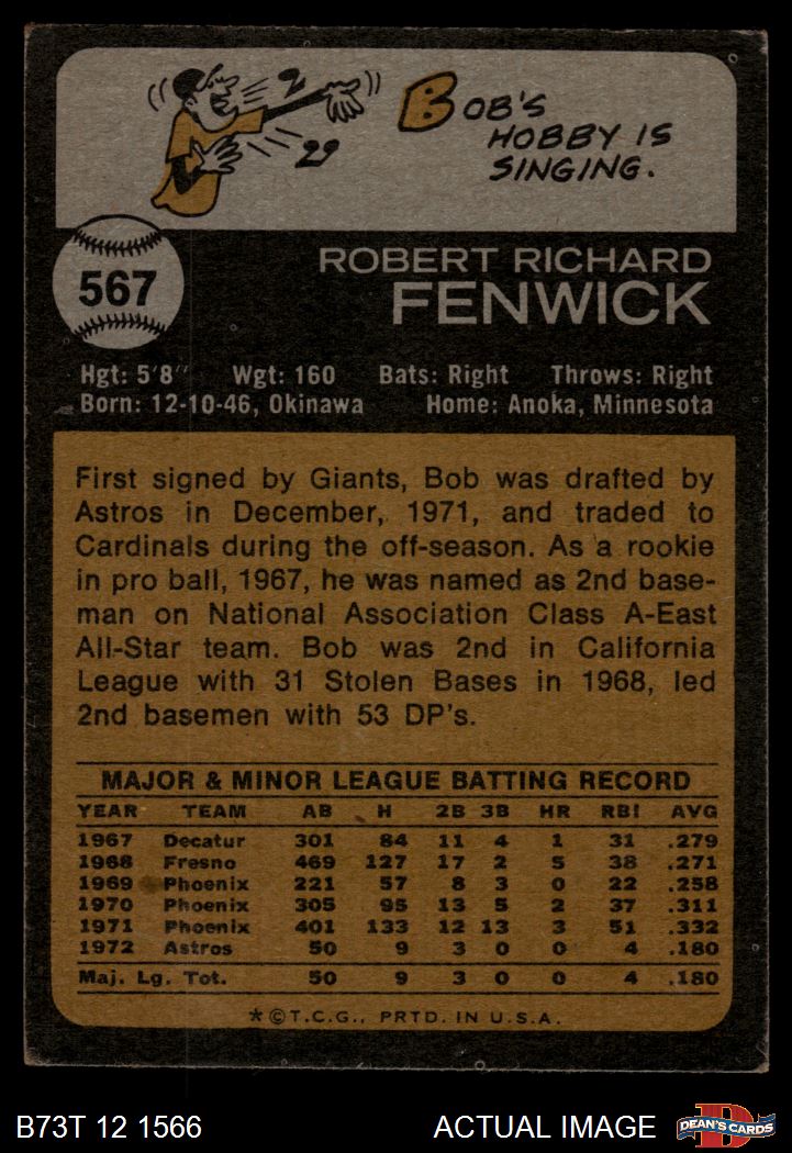 1973 Topps #567 Bob Fenwick 2 - GOOD