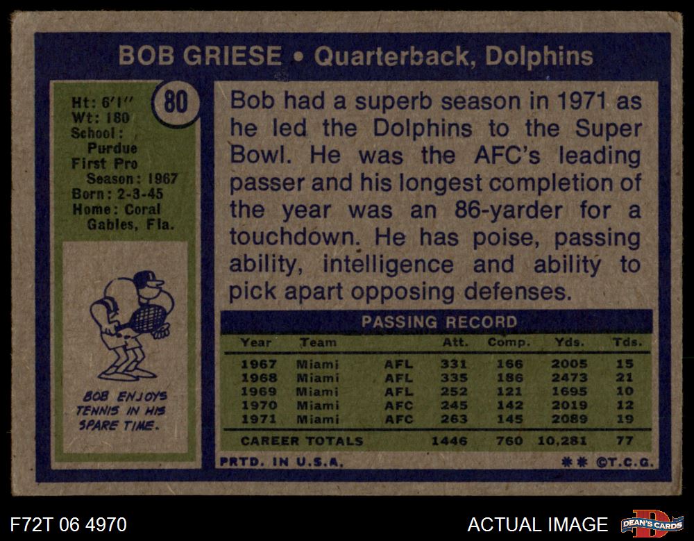 1972 Topps #80 Bob Griese 2.5 - GD+