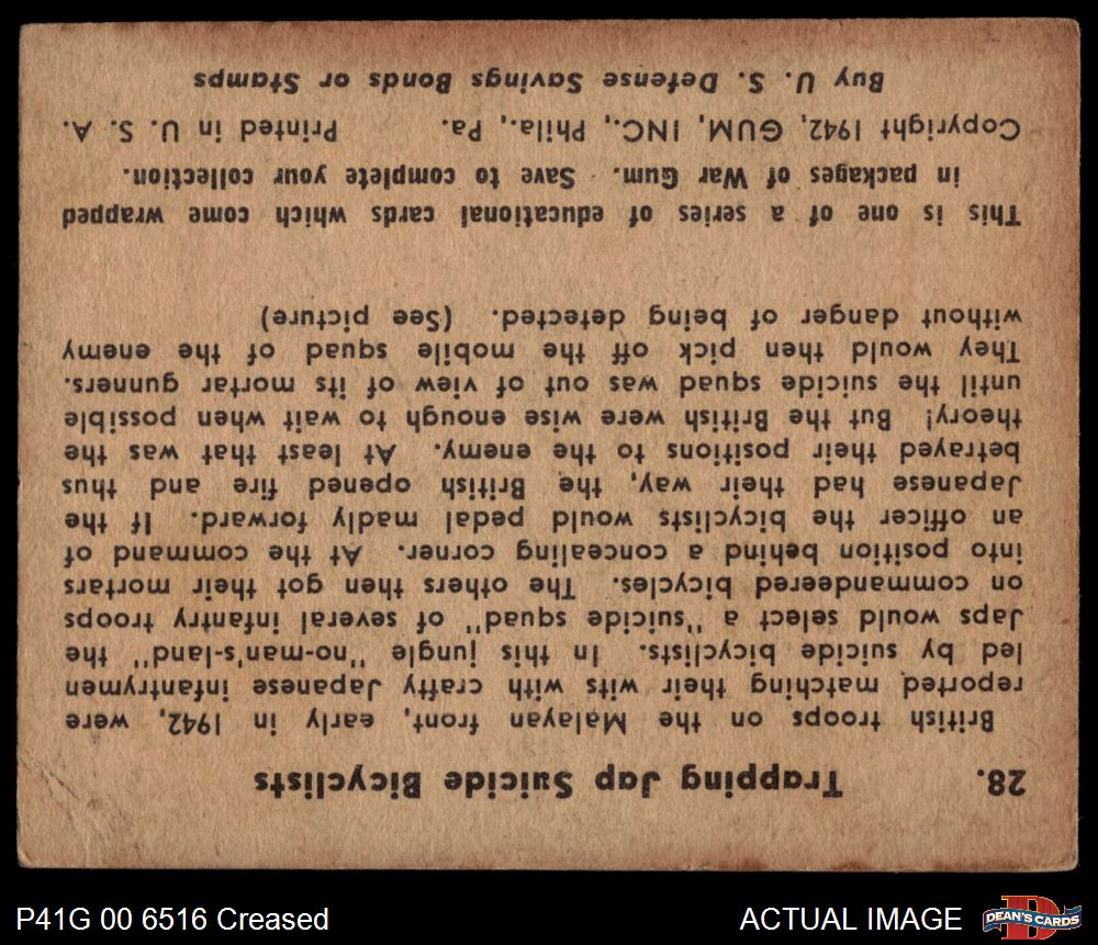 1941 War Gum #28 Trapping Japanese Suicide Bicyclists