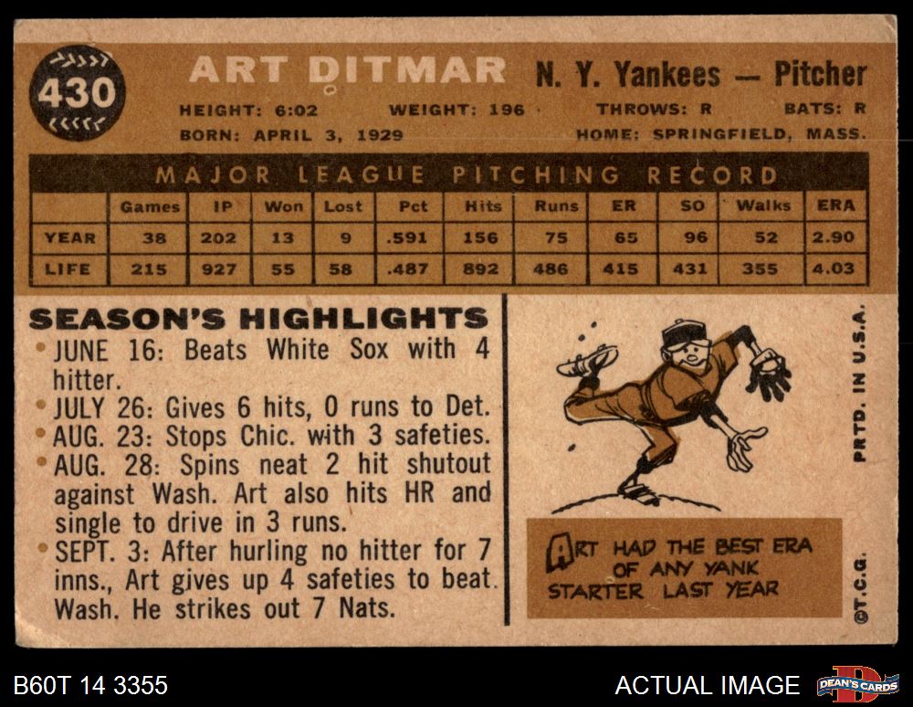 1960 Topps #430 Art Ditmar 2.5 - GD+