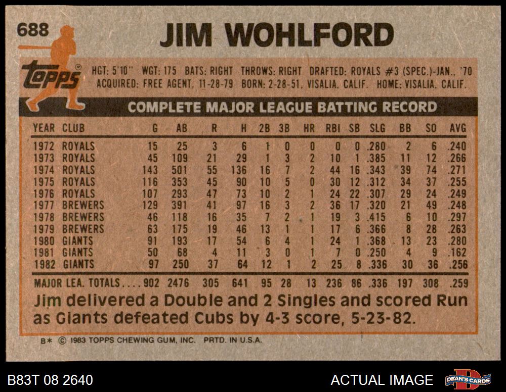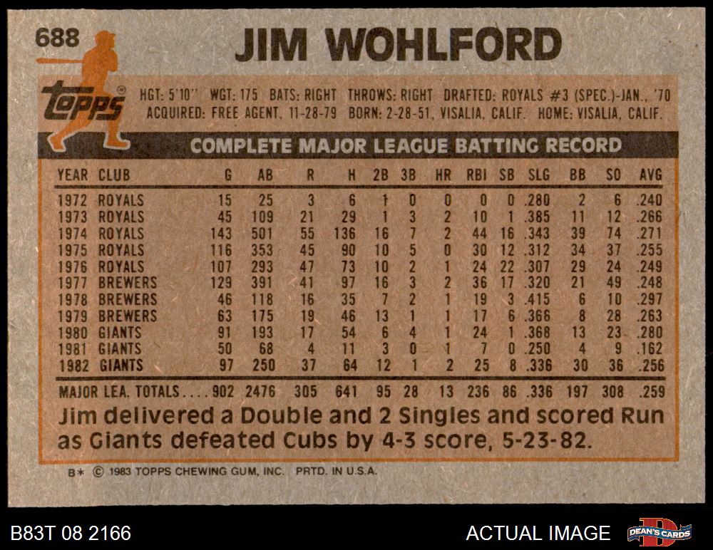 1983 Topps #688 Jim Wohlford