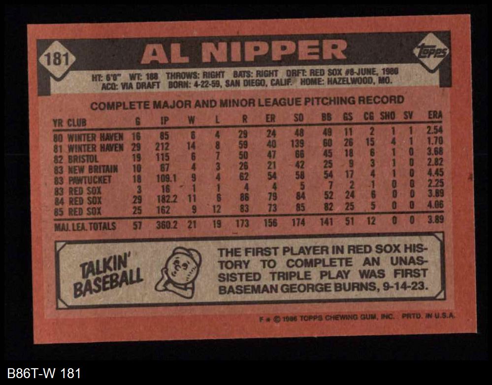 1986 Topps #181 Al Nipper 8 - NM/MT