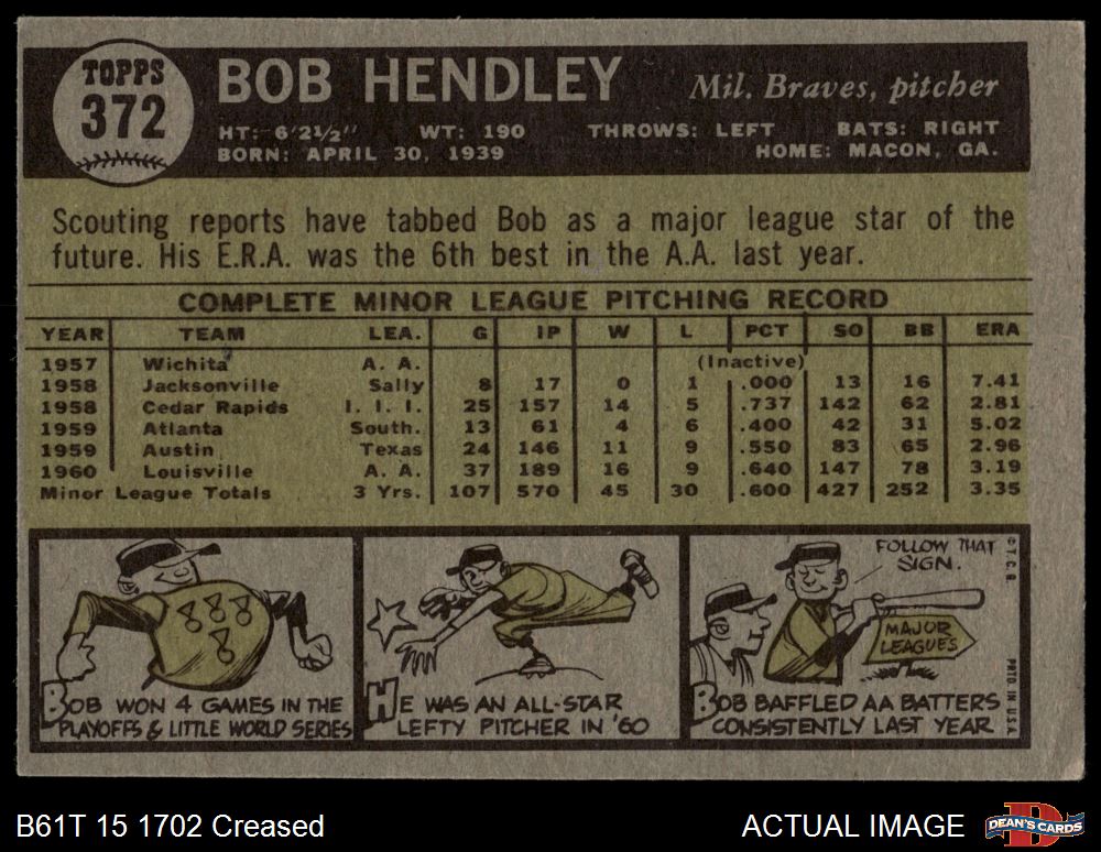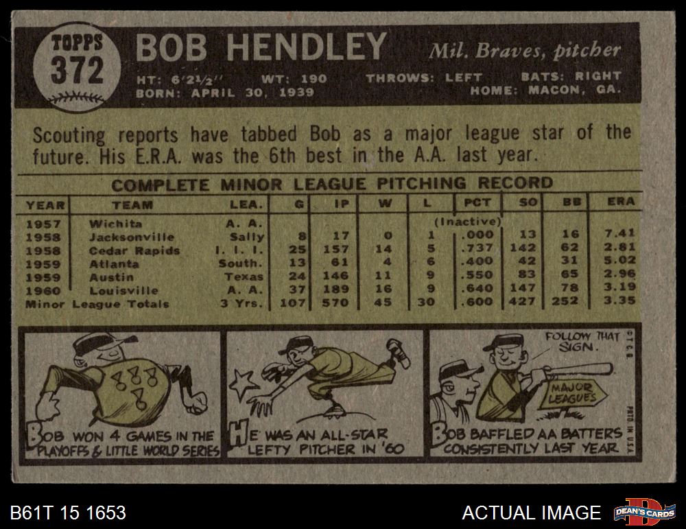 1961 Topps #372 Bob Hendley
