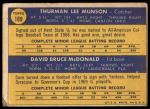 1970 Topps #189  -  Thurman Munson / Dave McDonald Yankees Rookies Front Thumbnail