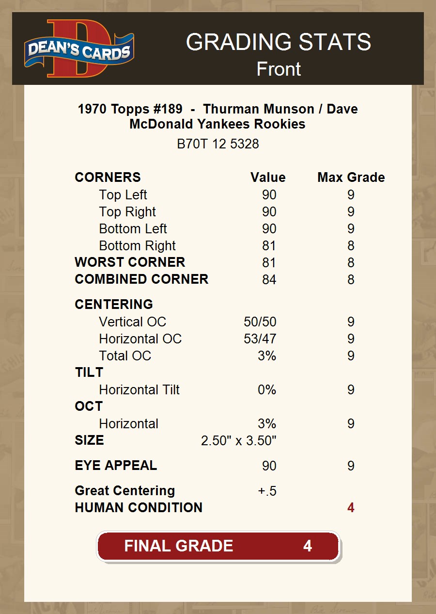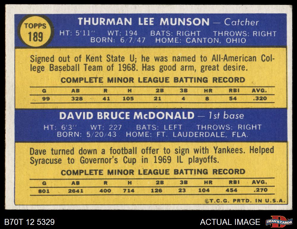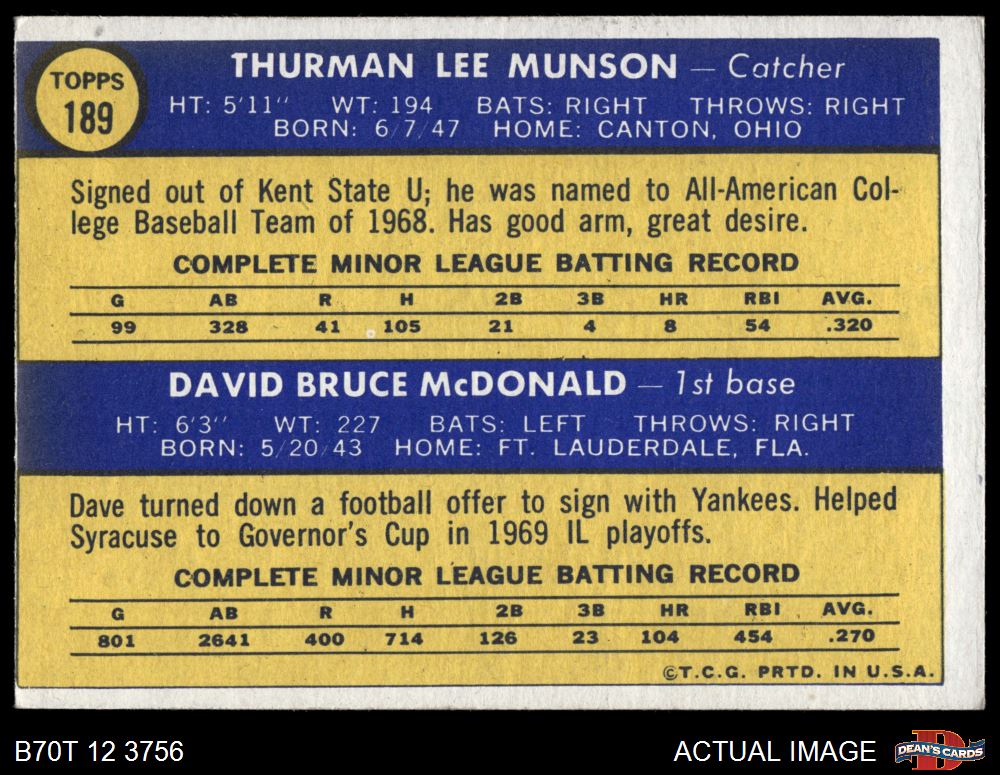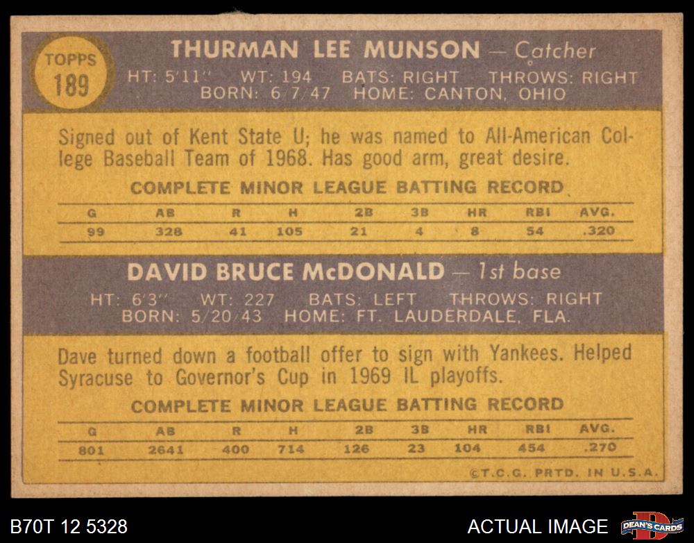 1970 Topps #189 - Thurman Munson / Dave McDonald Yankees Rookies 4 - VG/EX