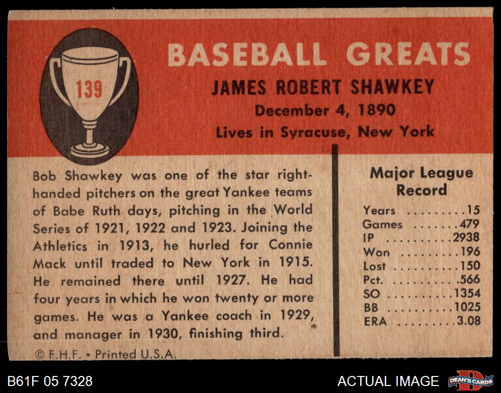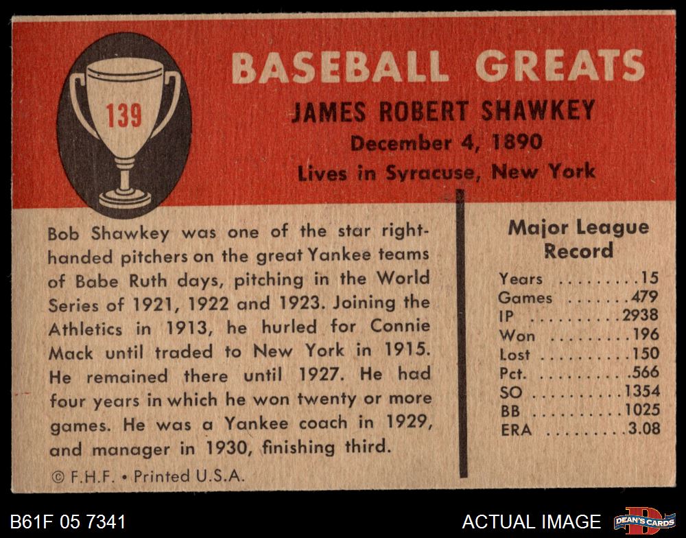 1961 Fleer #139 Bob Shawkey 4 - VG/EX