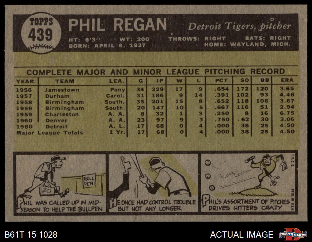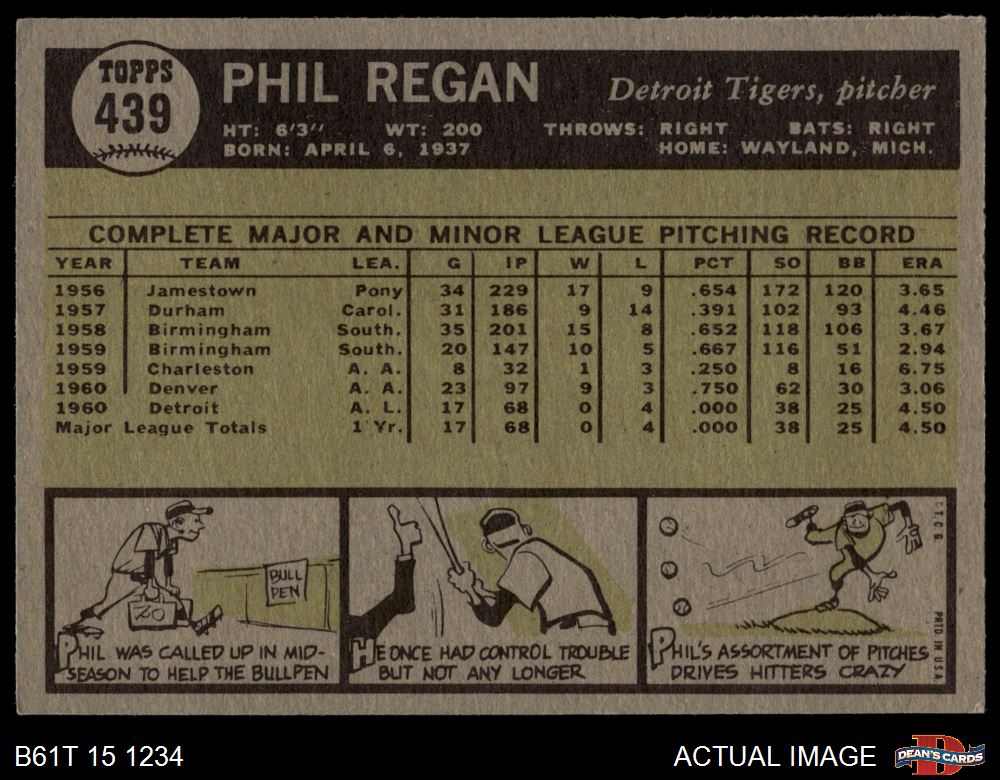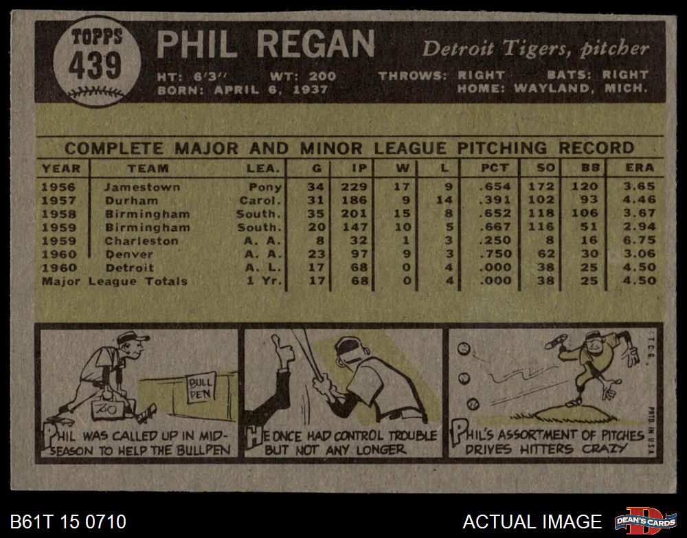1961 Topps #439 Phil Regan