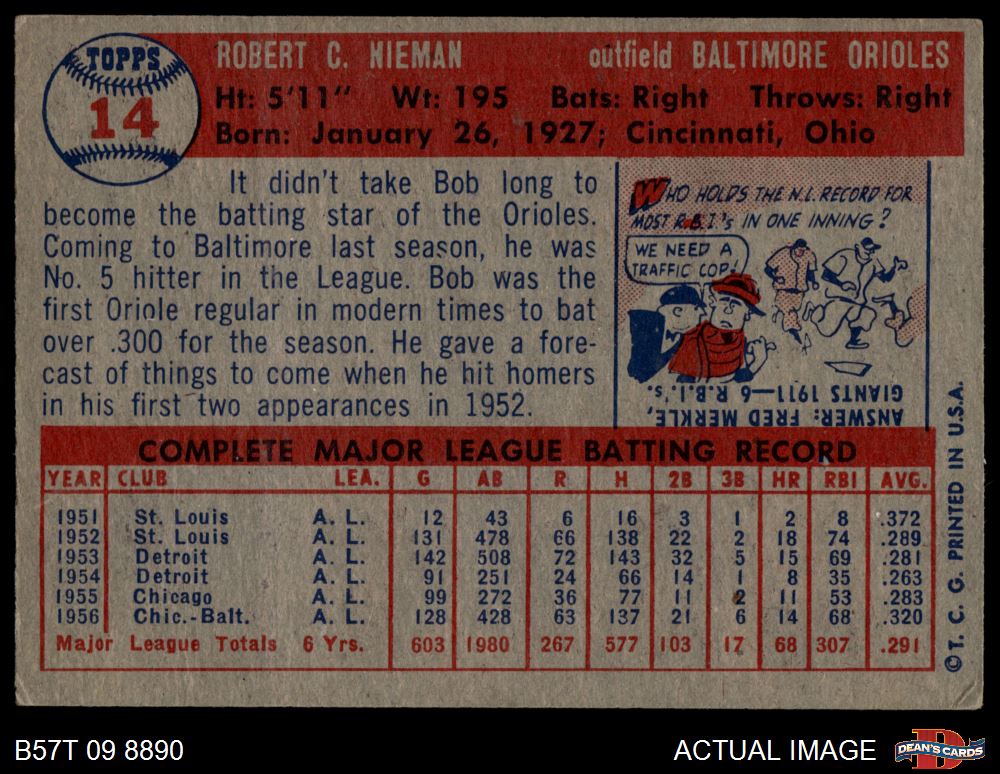 1957 Topps #14 Bob Nieman 2 - GOOD