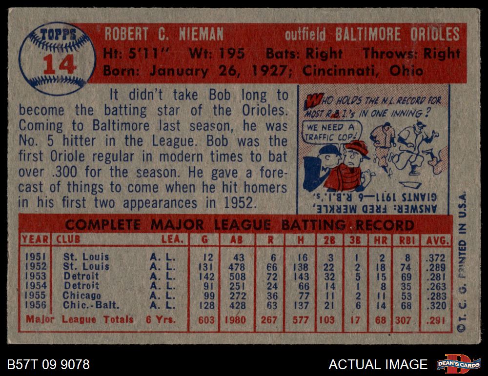 1957 Topps #14 Bob Nieman Front Thumbnail