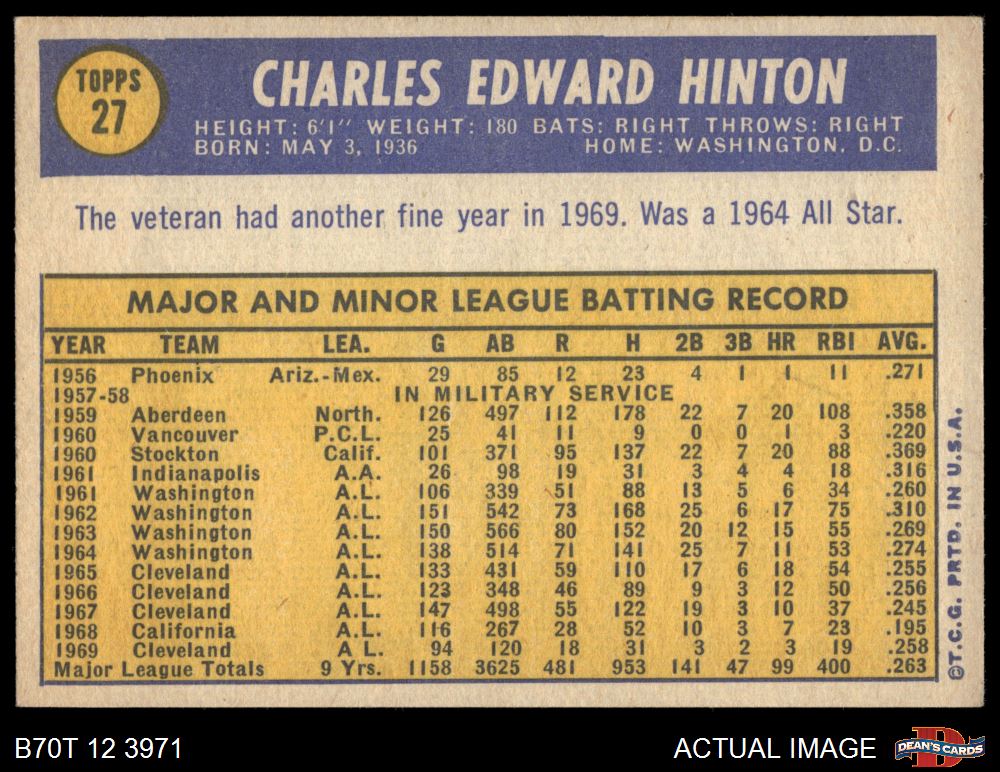 1970 Topps #27 Chuck Hinton 6 - EX/MT