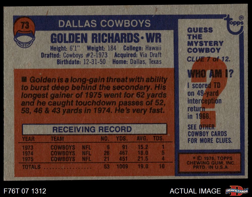 1976 Topps #73 Golden Richards 5 - EX