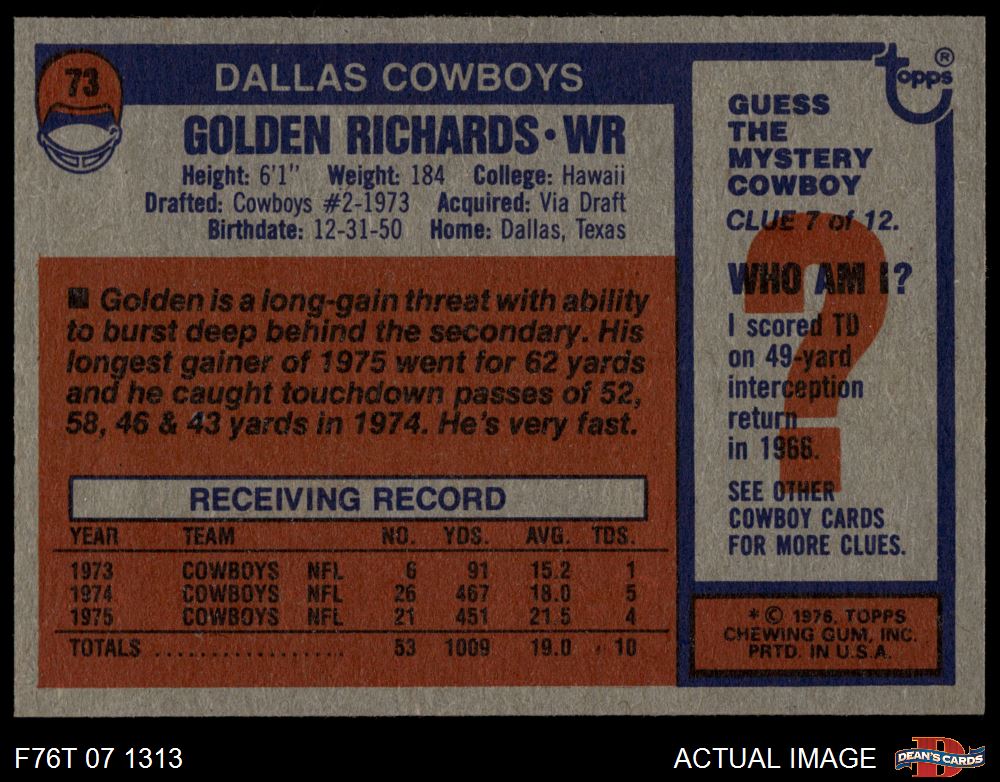 1976 Topps #73 Golden Richards 8 - NM/MT