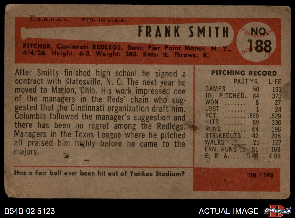 1954 Bowman #188 Frank Smith