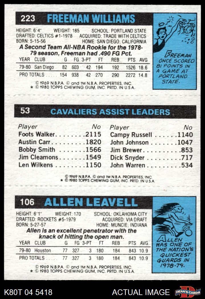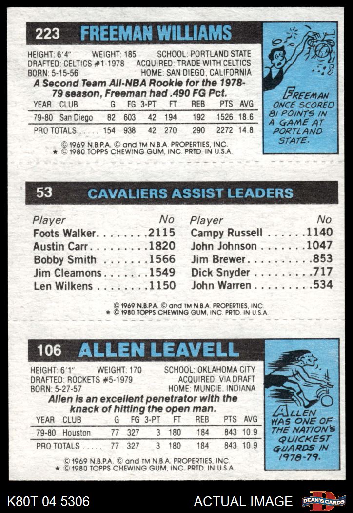 1980 Topps - Allen Leavell / Foots Walker / Freeman Williams 106 / 53 / 223 7 - NM