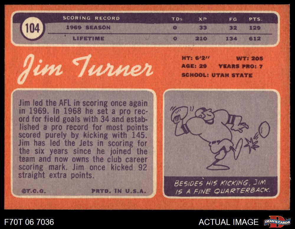 1970 Topps #104 Jim Turner 6 - EX/MT