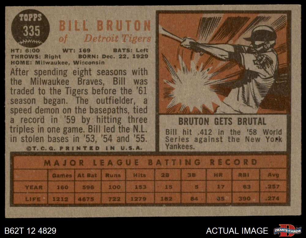 1962 Topps #335 Billy Bruton 6 - EX/MT