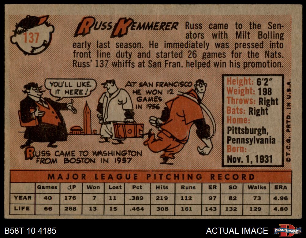1958 Topps #137 Russ Kemmerer 3 - VG