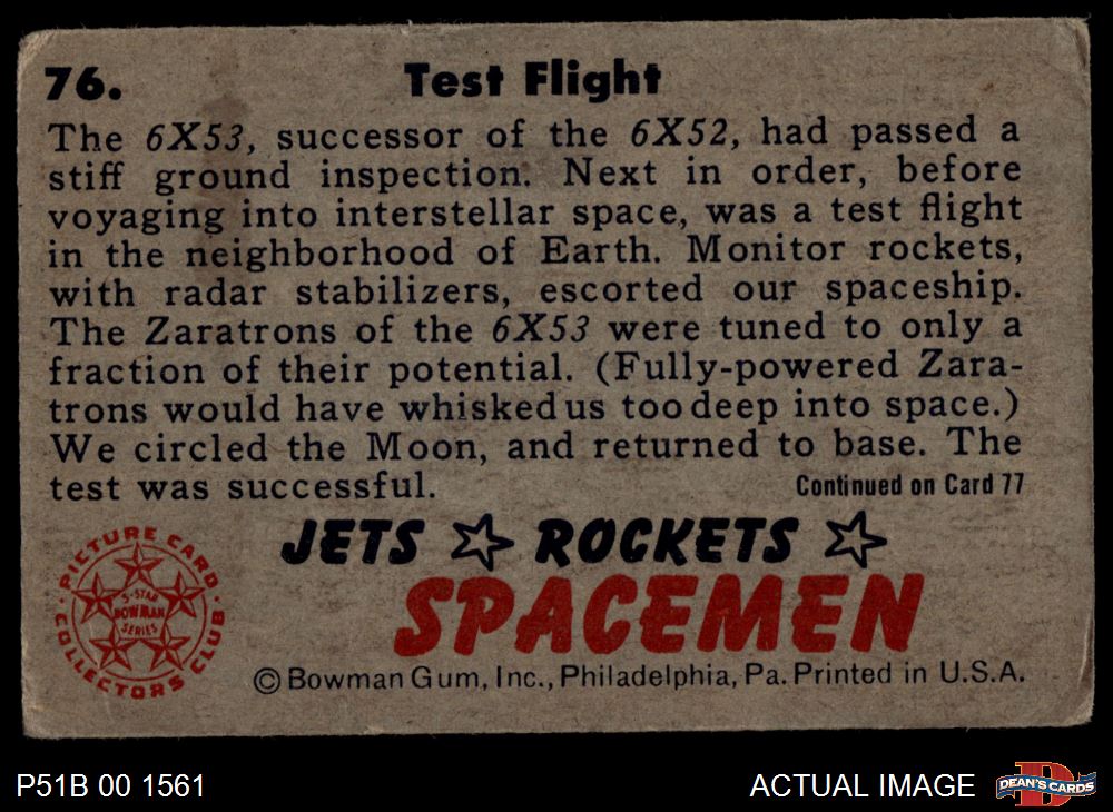 1951 Bowman Jets Rockets and Spacemen #76 Test Flight