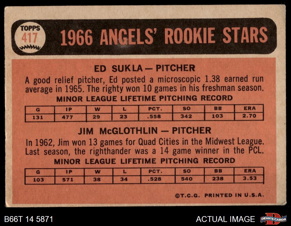 1966 Topps #417 - Jim McGlothlin / Ed Sukla Angels Rookies 2 - GOOD