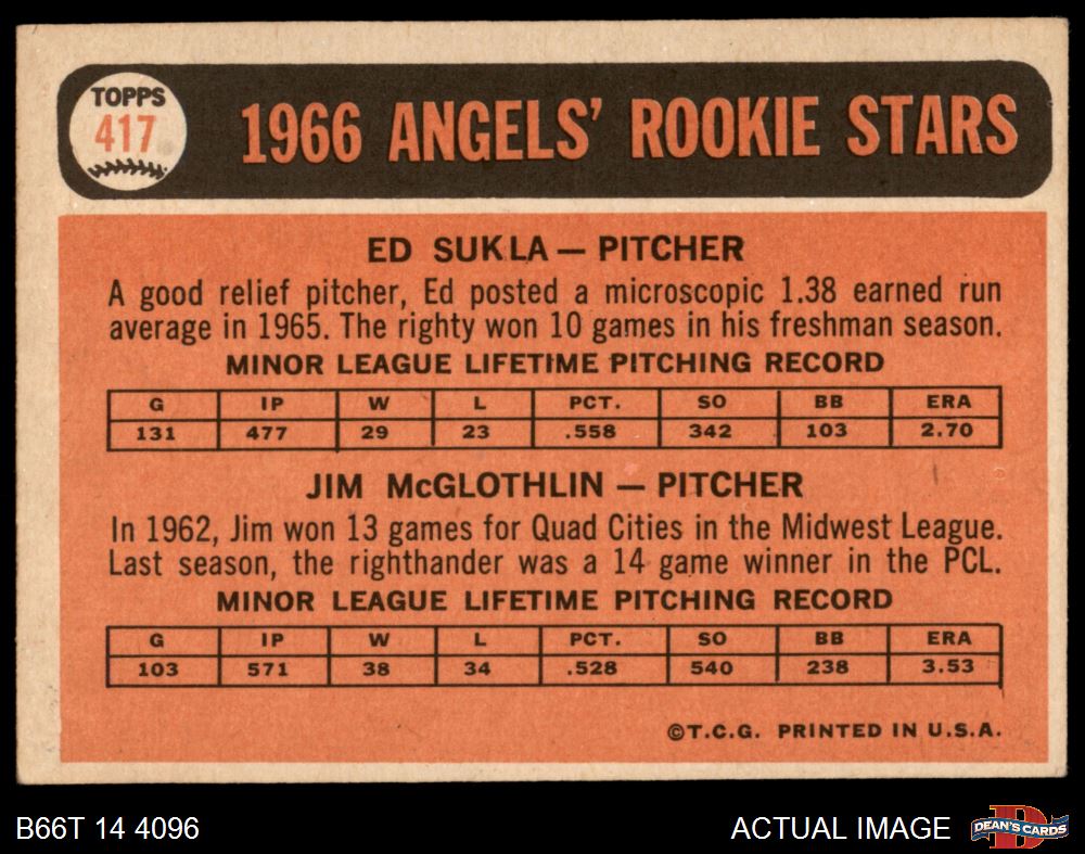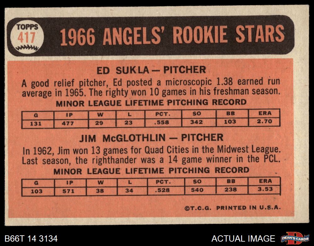 1966 Topps #417 - Jim McGlothlin / Ed Sukla Angels Rookies 3 - VG