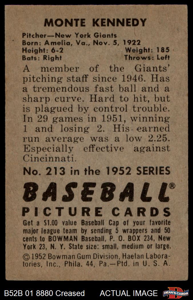 1952 Bowman #213 Monte Kennedy 3.5 - VG+