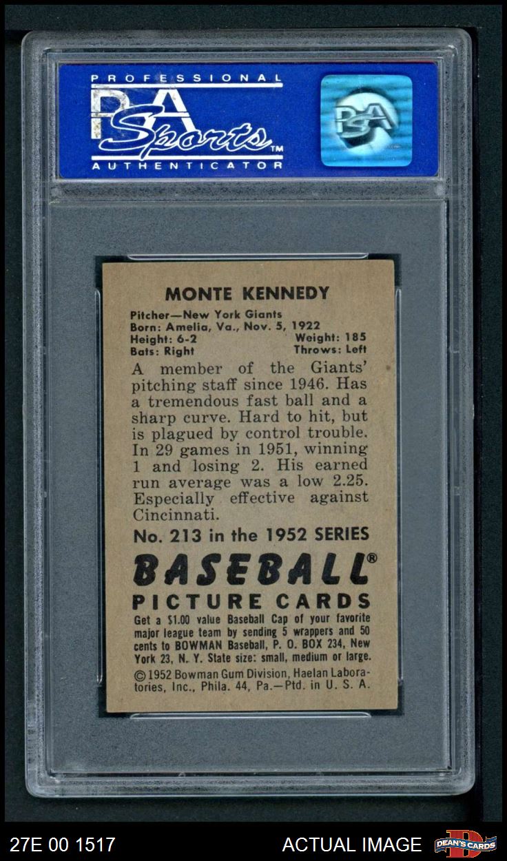 1952 Bowman #213 Monte Kennedy PSA 8 - NM/MT