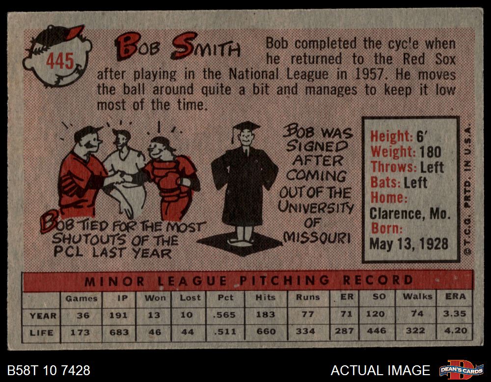 1958 Topps #445 Bob Smith 6 - EX/MT