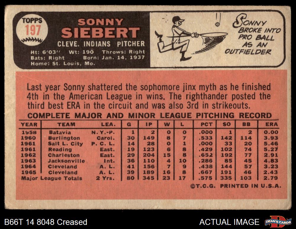 1966 Topps #197 Sonny Siebert 1.5 - FAIR