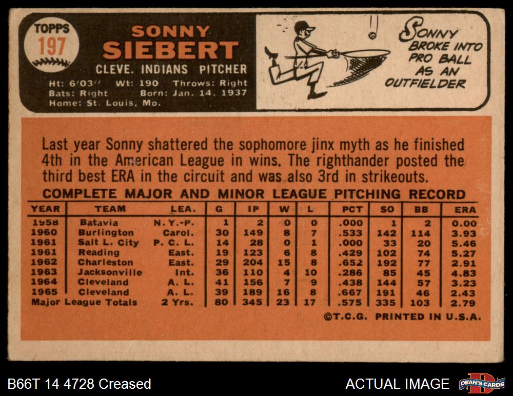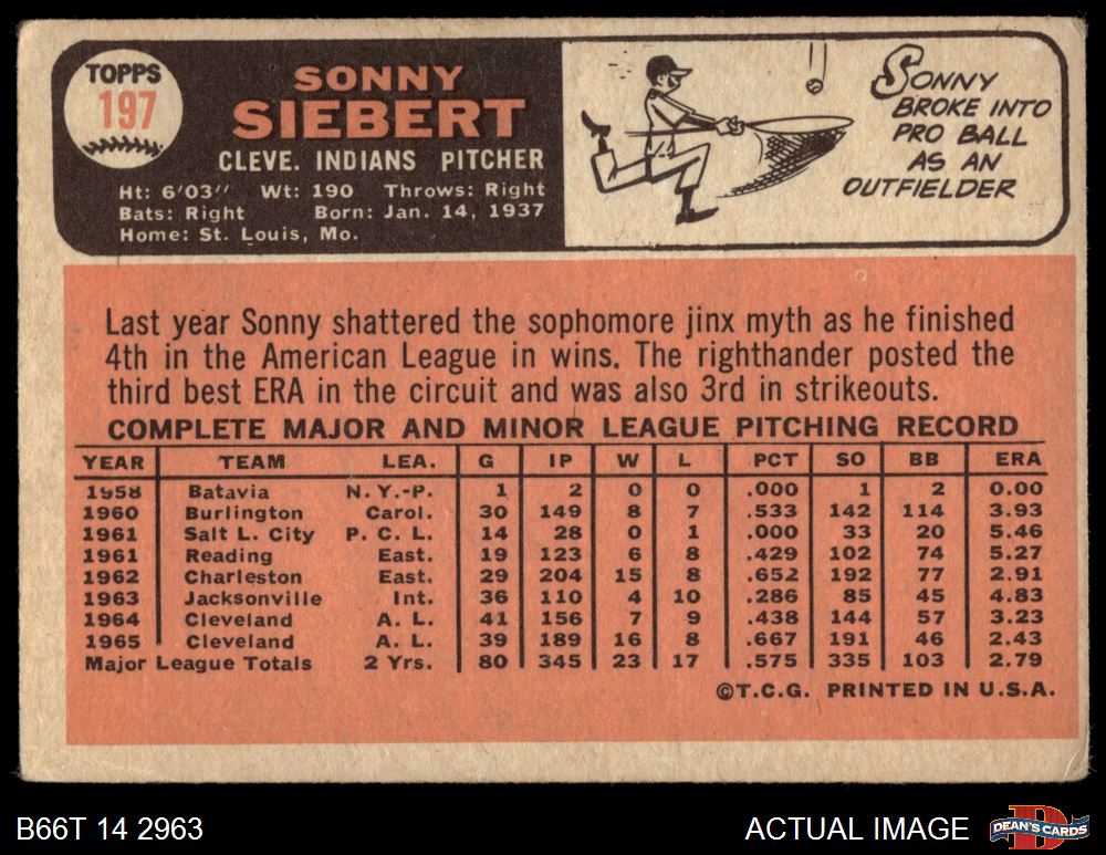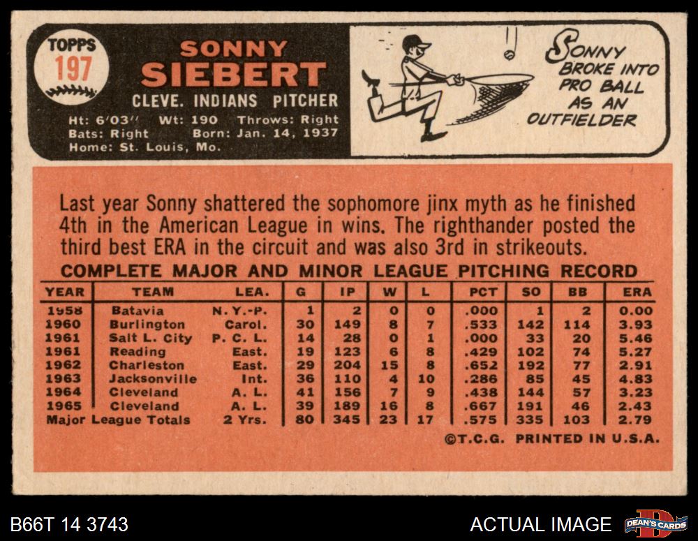 1966 Topps #197 Sonny Siebert