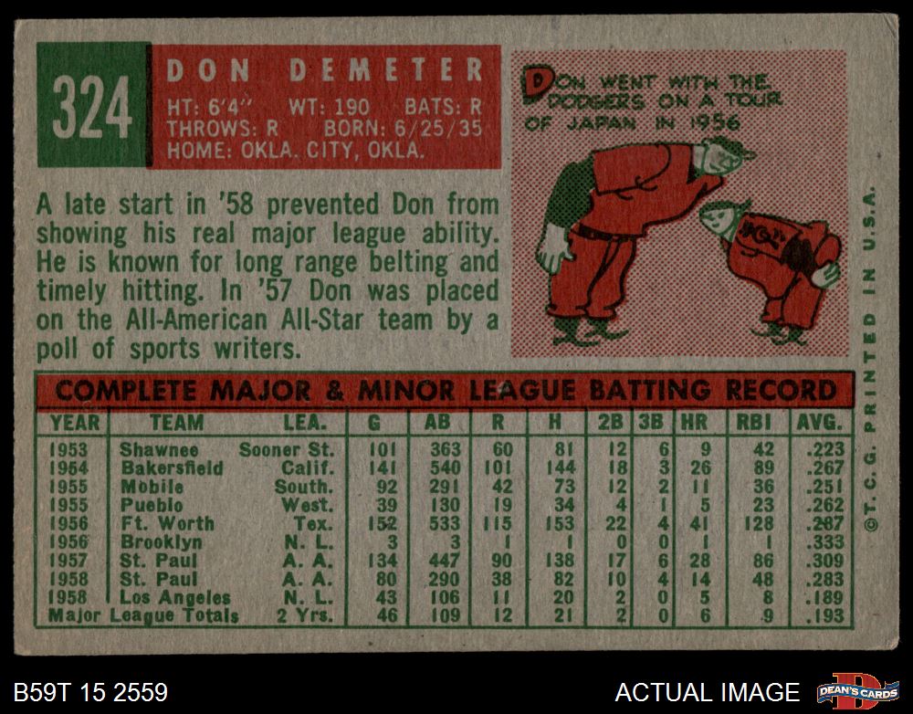 1959 Topps #324 Don Demeter 3.5 - VG+