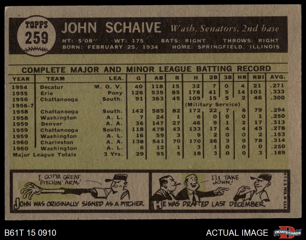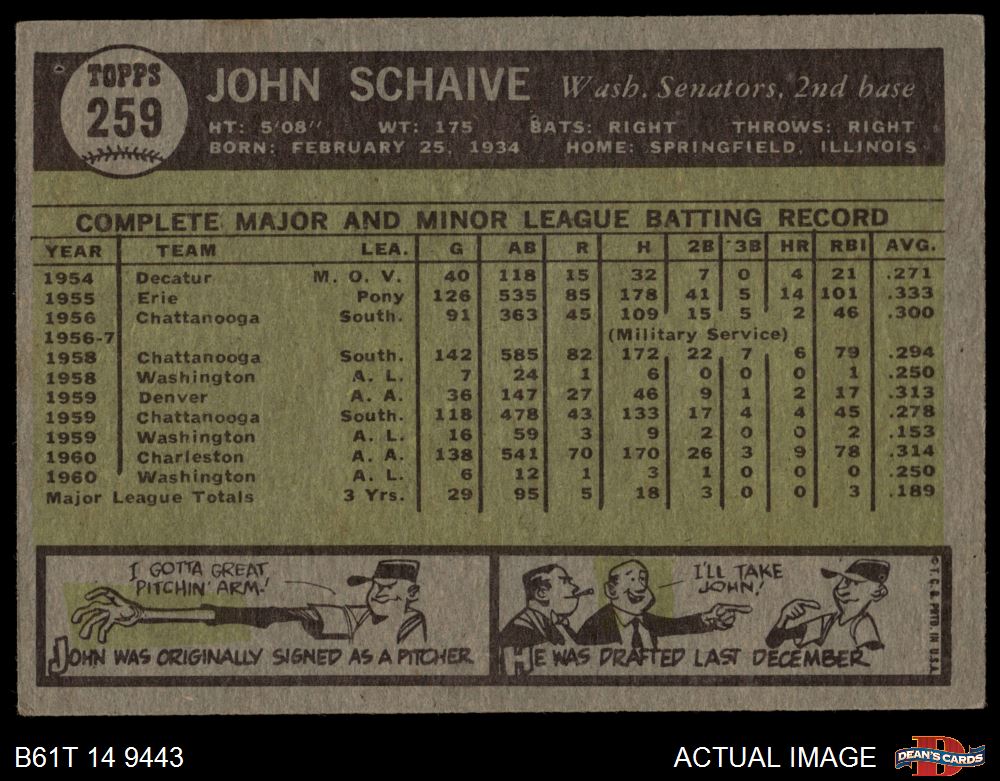 1961 Topps #259 John Schaive 3 - VG