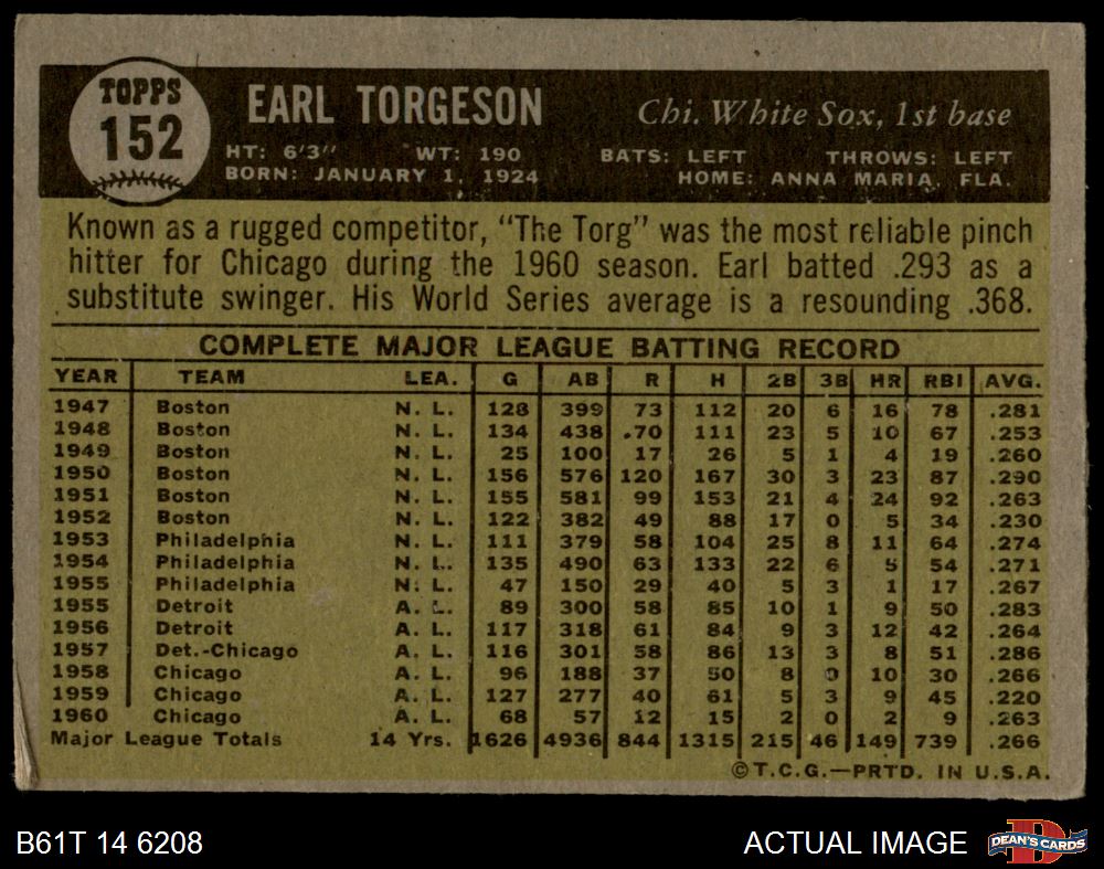 1961 Topps #152 Earl Torgeson