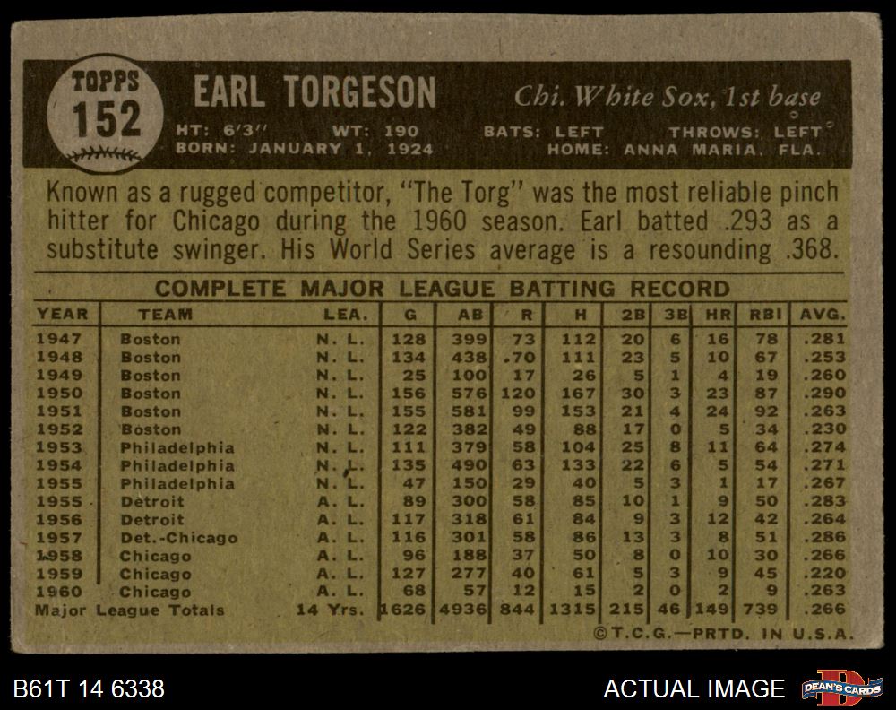 1961 Topps Baseball Cards (9,000 available)1961 Topps White Sox (662 available)