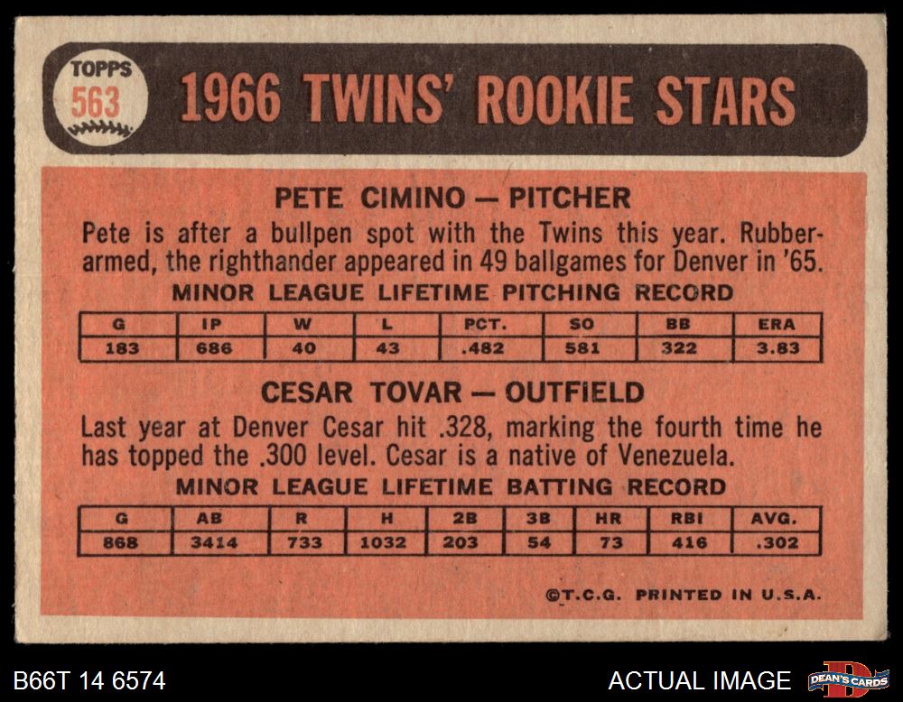 1966 Topps #563 - Cesar Tovar / Pete Cimino Twins Rookies 3 - VG