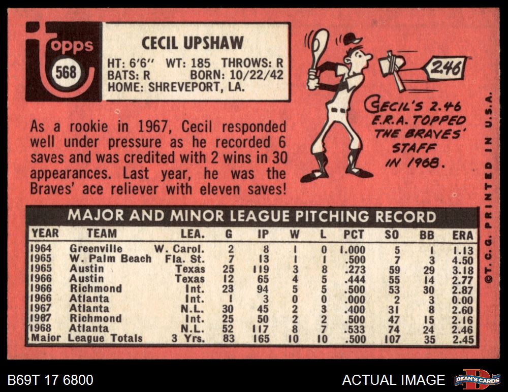 1969 Topps #568 Cecil Upshaw