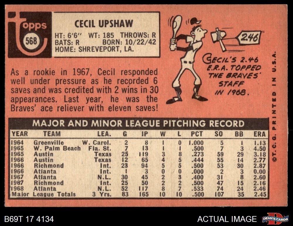 1969 Topps #568 Cecil Upshaw 5 - EX