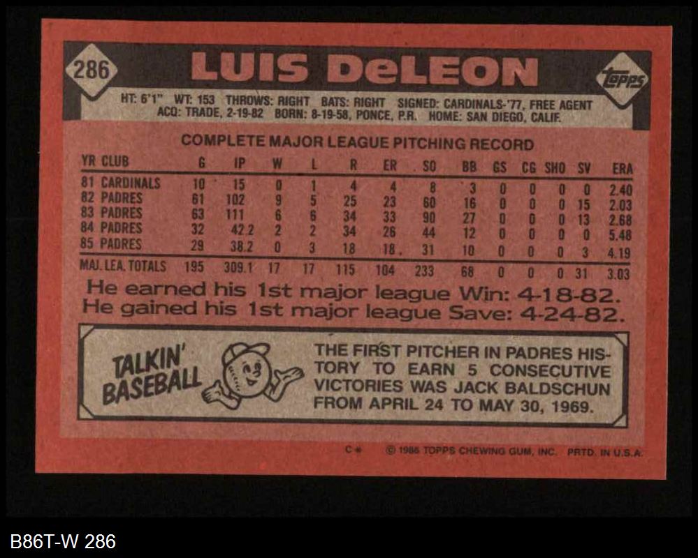 1986 Topps #286 Luis DeLeon